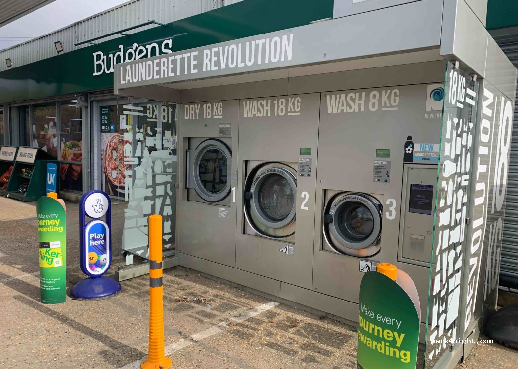 Washing machines at the petrol station. Bottled gas too
