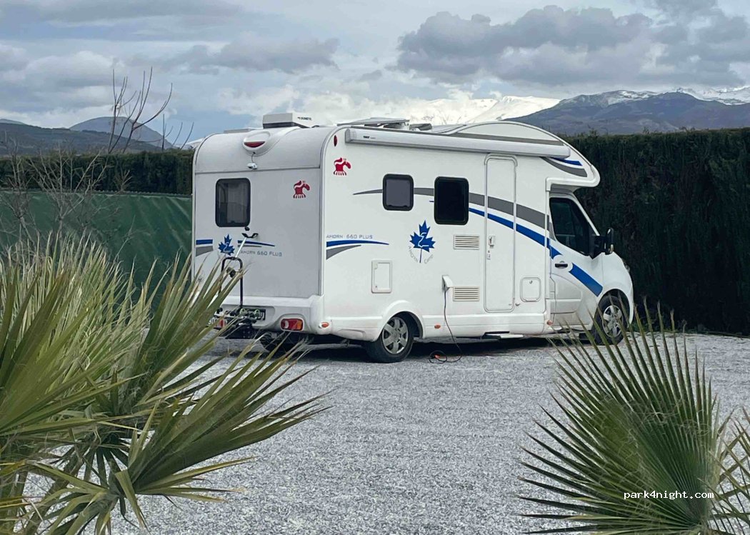 Accueil très chaleureux par Blanca. Aire chez un particulier bien stabilisée et sécurisée. Notre hôtesse nous propose un parcours dans Grenade et commande un taxi pour nous (10€). 4 car l'électricité et le wifi ne fonctionnaient pas. (Nous avons eu droit à une ristourne).L'aire est actuellement en train d'évoluer : des services vont être aménagés.