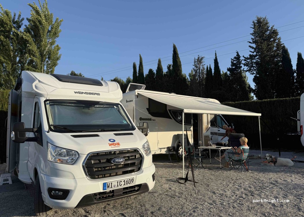 C'est juste un parking sécurisé en gravier, sans service et à 20€ la nuit. Hôte sympa mais endroit sans intérêt et trop loin de la ville pour y aller à pied (4km).