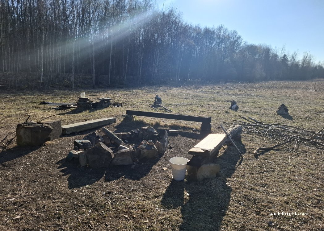 Free camping site "Promyczkowo". There is a place for a bonfire, there are benches. There is a meadow and a forest and space for many campers :)