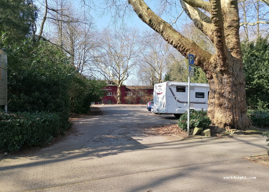 Parking lot at the sports field, opposite the church. We parked here one night and slept very well and peacefully. Three hours with a parking disc on weekdays from 9 a.m. to 3 p.m.