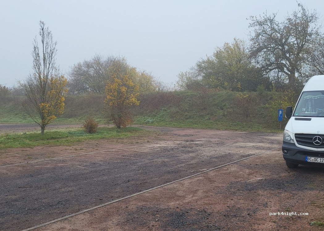 Parkplatz an der Veranstaltungshalle von Bolanden. Ruhiger Ort abseits gelegen für eine Nacht.