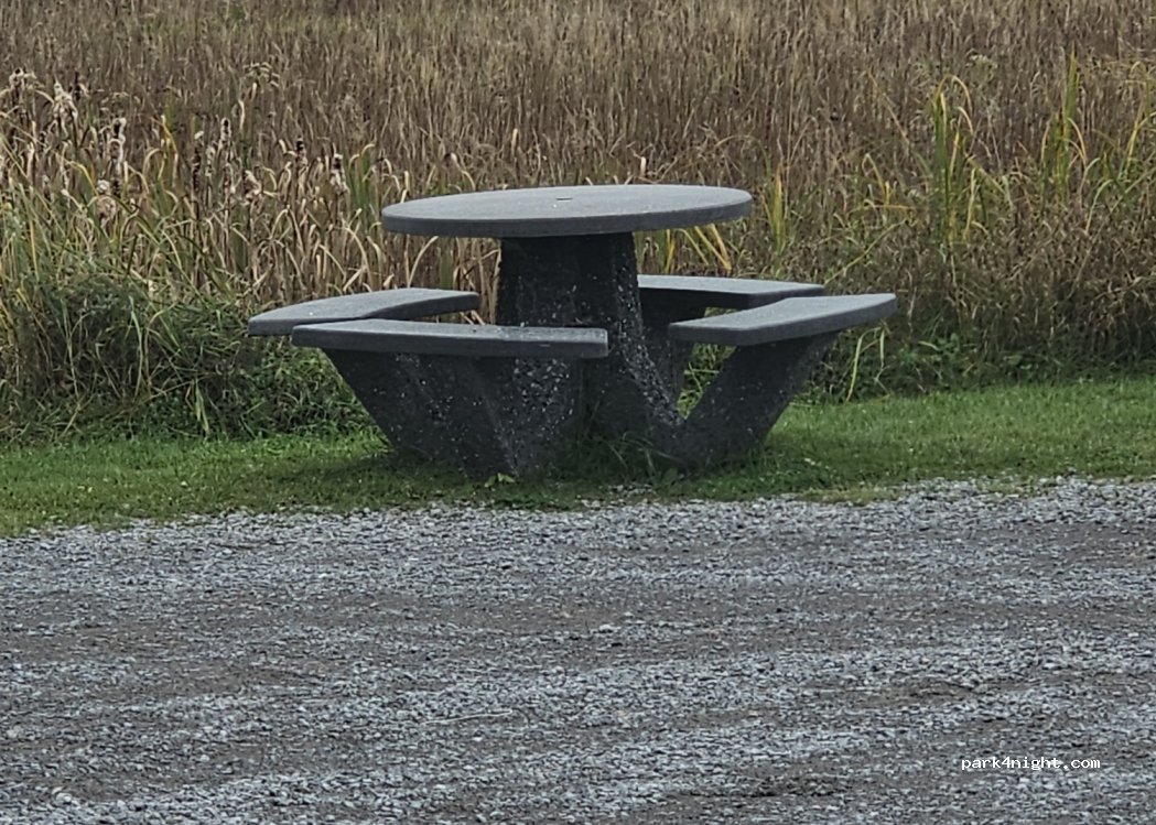 Très tranquille malgré la route à proximité. Plusieurs table à pic nic et un beau sentier