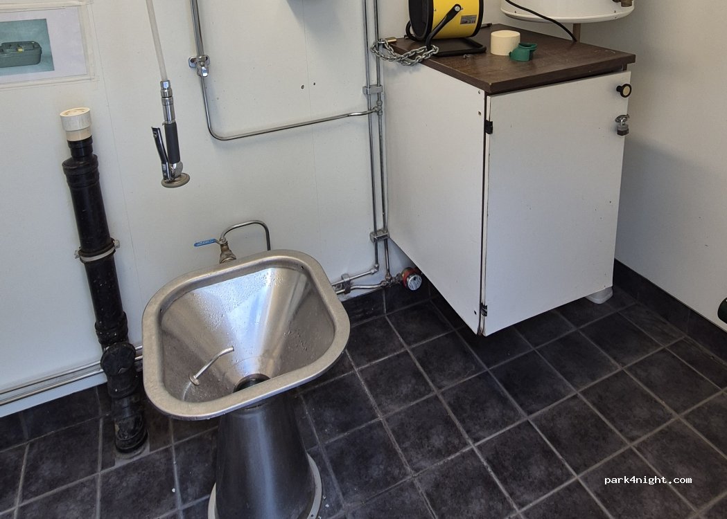 Merci pour ces services. Eau à disposition avec tuyau enrouleur. vidange eaux usées facile avec la trappe au sol. vidanges Wc également. Vous pouvez vous laver les mains, eau chaude, savon et désinfectant pour mains. Lieu facile d'accès. Propre et fonctionnel. Parfait, merci.