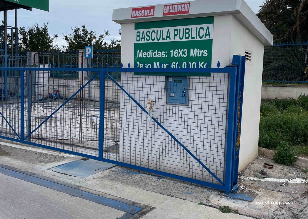 Báscula puente pública junto a una estación de pesaje y una estación de lavado. Cerrada entre las 22:00 y las 6:00.