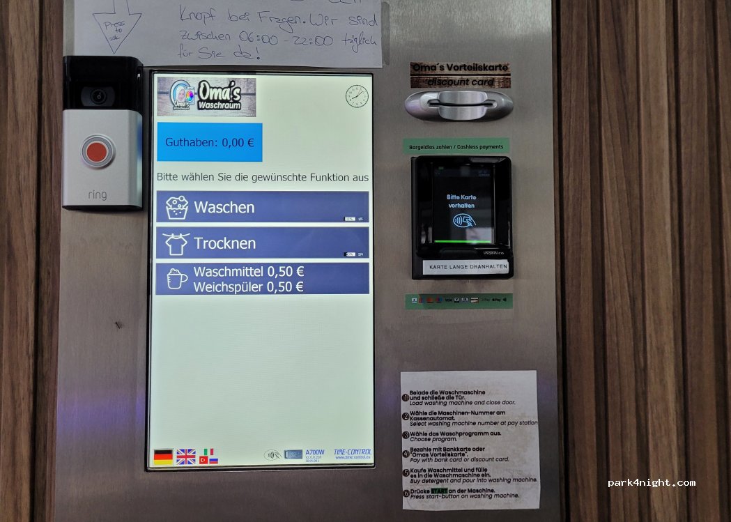 Great Waschsalon with all new Equipment. Not far from the Stellplatz. Centrally located next to shops and restaurants. The owner was very nice and helpful.