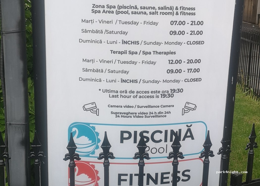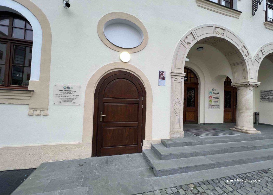 Excelentes duchas en el sótano de la piscina. Hay una entrada independiente a la izquierda de las escaleras de acceso a la piscina. También se puede usar sin la piscina. El precio de la ducha incluye champú. Cerrado domingos y lunes. La piscina y la sauna también tienen precios razonables. Hay algunas plazas de aparcamiento disponibles por 3 lei la hora frente a la casa o a 50 metros, en la gran plaza.