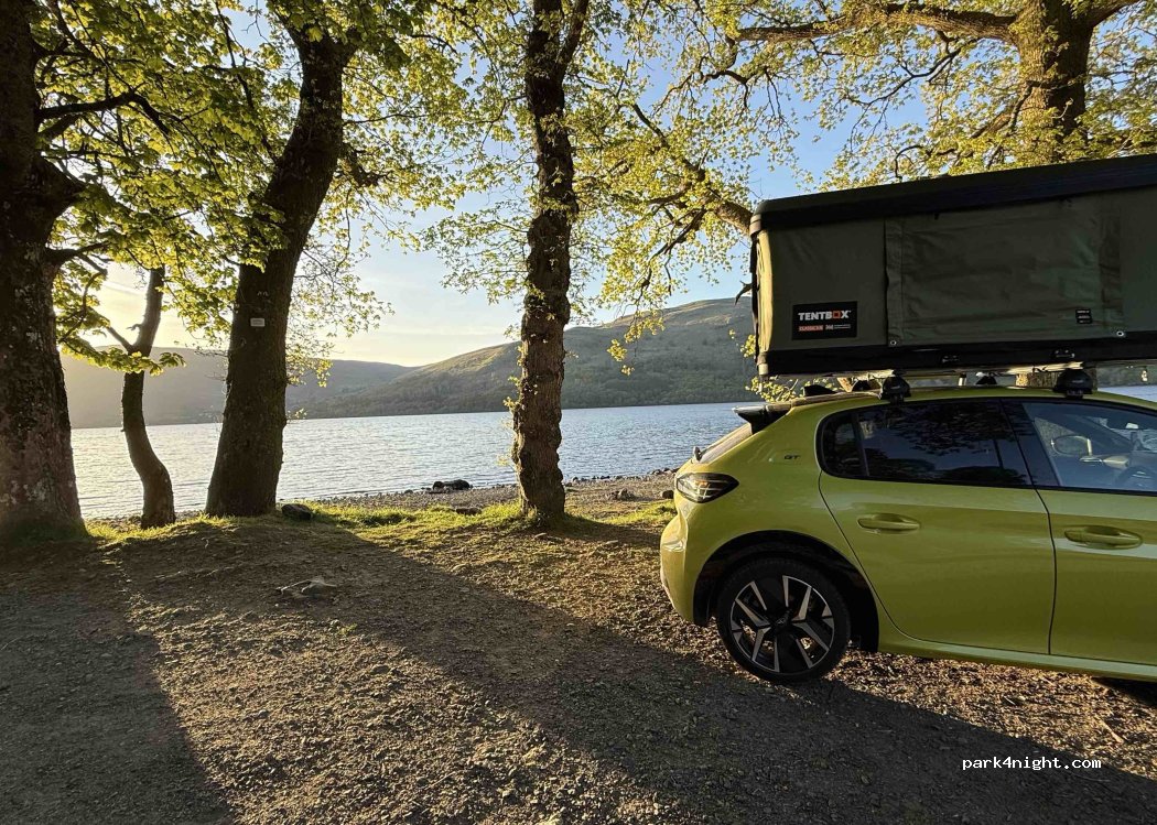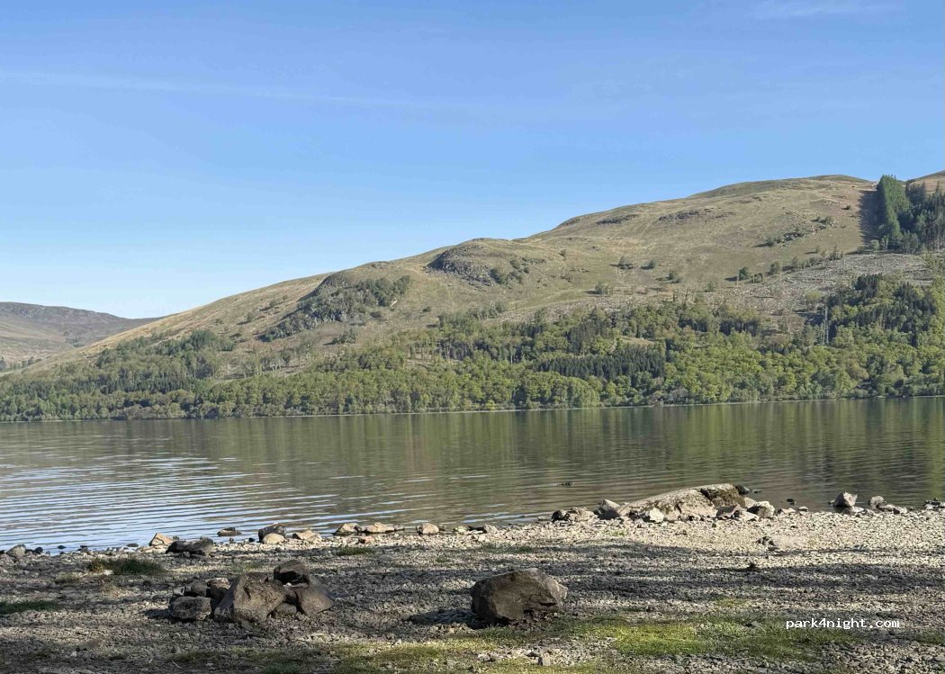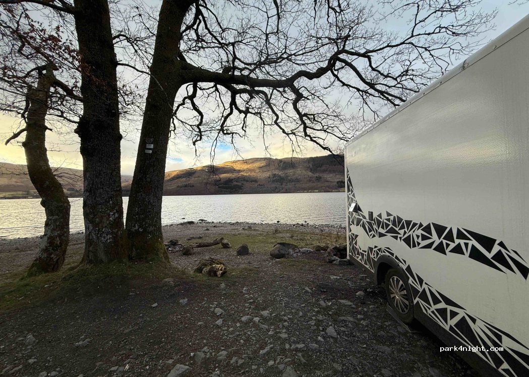 Great spot on the edge of the loch. Gets busy with walkers in the morning going up Ben Vorlich. This is within the Loch Lomond & the Trossachs NP camping management zone but that only seems to apply to tent camping in this area. No one disturbed us or told us that we couldn't park here overnight.