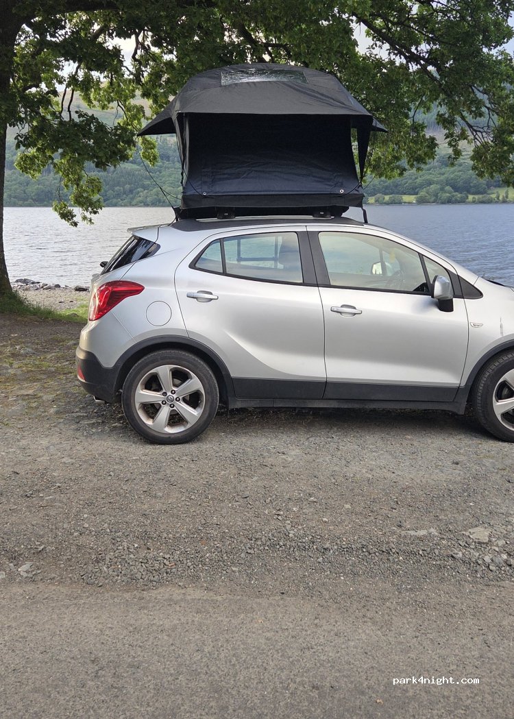Roof Tent - We spent 1 night here on the 5th of May, and we were tempted to stay another night because of how stunning the area is. Big enough space to fit 3 vehicles at a push. There was one small campervan there when we arrived and we had plenty of space. Road towards the spot is tight with pull in areas but manageable in smaller vehicles. Didn’t have to pay anything!