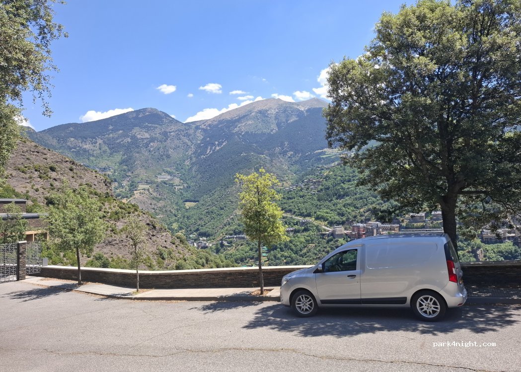 Parking du cimetière, accessible par une route de montagne depuis Sant Julià de Loria. Très calme et offrant une vue sur la ville.