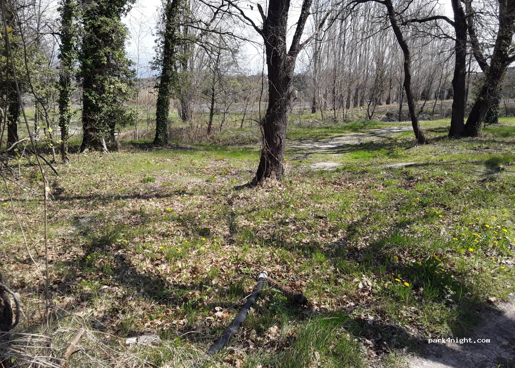 After the spot point, descend 200m. Small shady corner under the trees near a stream. Pay attention to the surrounding crops....beehives, vines and lavender. Respect for the farmers...calm and flat, preferable to vans and vans, path a little tricky.