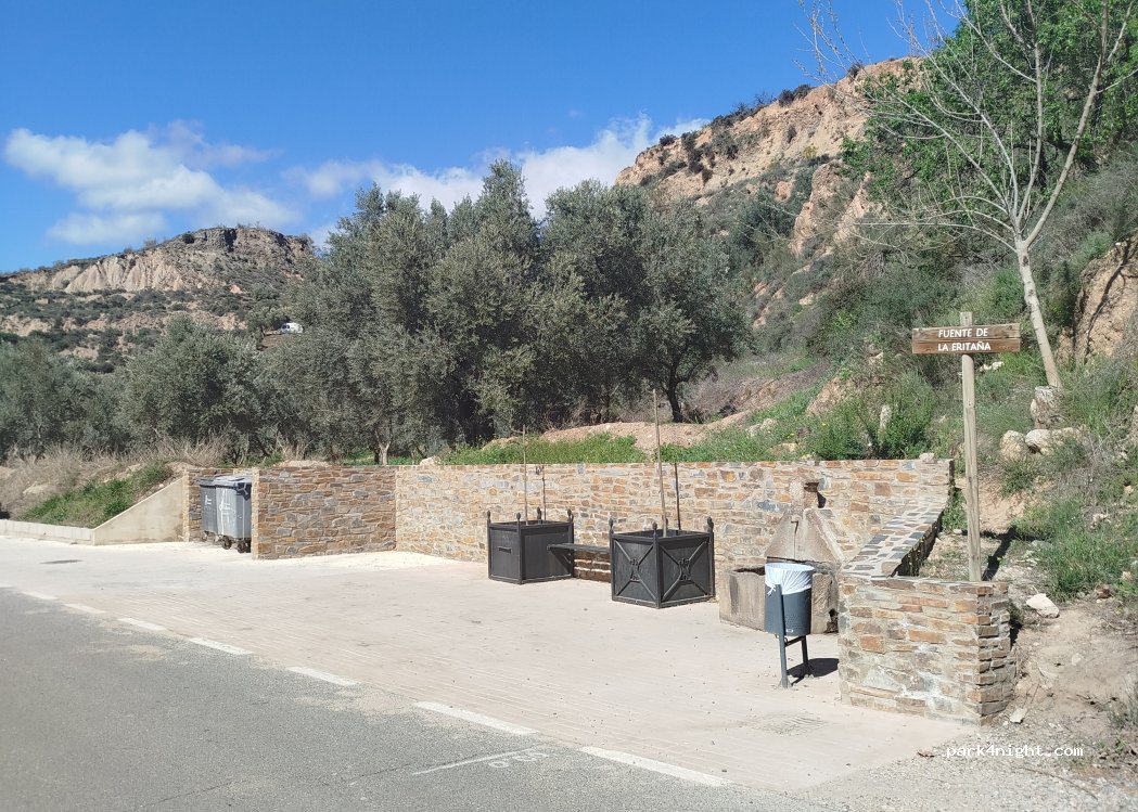 Fuente de agua potable de montaña. El agua está buenísima; vi a muchos lugareños pasar a rellenar sus botellas. Hay mucho espacio para aparcar a ambos lados de la carretera, junto a la fuente. Hay grandes contenedores de basura cerca.