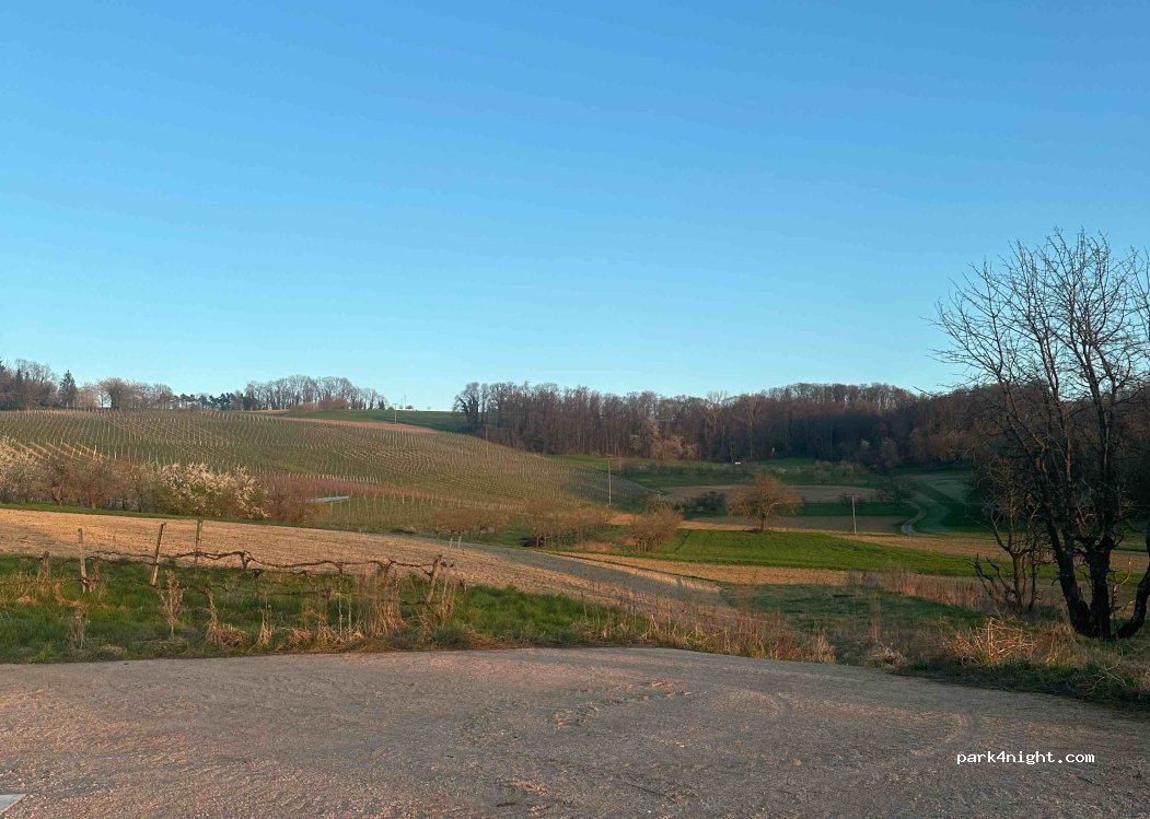 Sehr schöner ruhiger Platz hinter dem Weingut in den Weinbergen. Der Empfang nett und unkompliziert. Das Gasthaus Krone quasi nebenan. Gutes Essen. Der Platz ist noch im Aufbau. Toiletten geplant. Toller Sonnenuntergang.