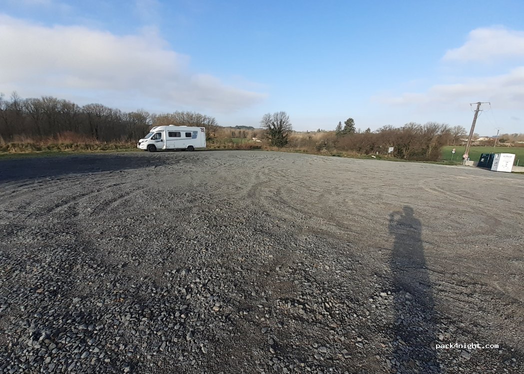 Großer, ebener Schotterparkplatz ohne Service. Dorf 600m entfernt, Bäckerei, Internationales Zentrum für Karikatur, Pressezeichnung und Humor.