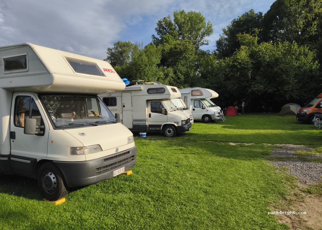 De eigenaresse is erg aardig. Alles wat je nodig hebt; water vullen, evt stroom, vuil water legen. Douches en wc waren schoon. Centrum dichtbij (met tram 25 min). We betaalden 25 euro per nacht voor een camper en twee personen.