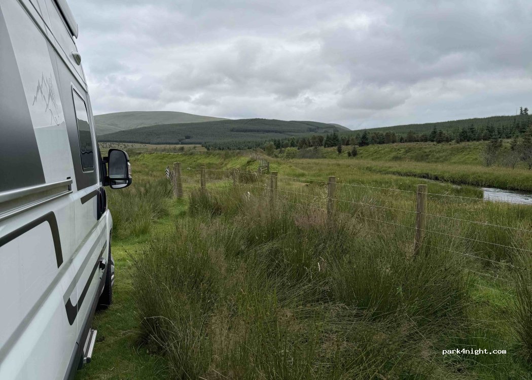 Cracking little spot about 150m down a gravel track off a single track tarmac road. Quiet river adjacent. Lots of space. Nice walk round the Clyde Wind Farm nearby.