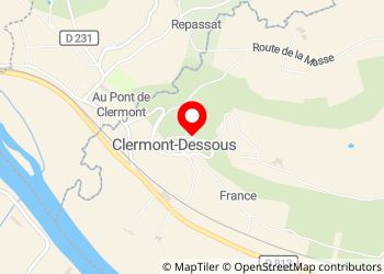Parking très calme juste en contrebas du joli petit village de Clermont-dessous. Vue sur la petite église éclairée la nuit. Il y a des toilettes municipales très propres avec possibilité de faire le plein d'eau car il y a un robinet en accès libre dans les toilettes avec possibilité de garer les véhicules juste devant.