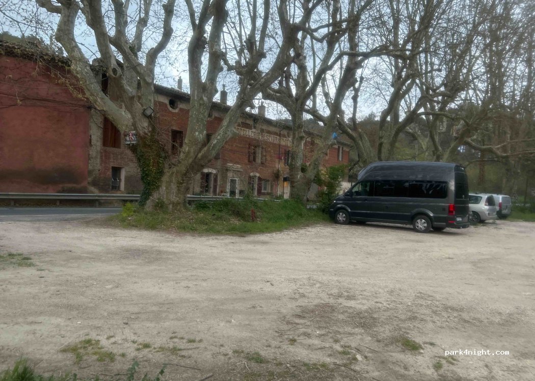 Parking en face d’un hôtel en travaux. Au bord d’une route passante dans la journée.