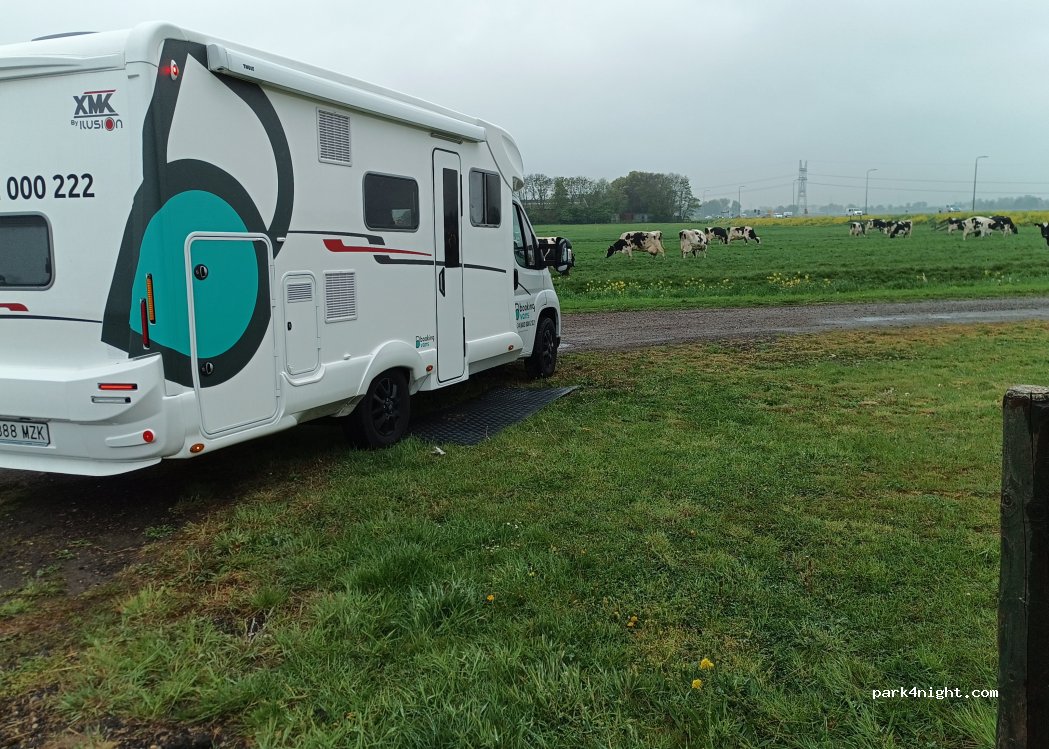 Au sein même d'une exploitation agricole. Très bon accueil, emplacements herbeux relativement plats. Tous les services à disposition. Quelques points négatifs : - proche de la N247 - "couloir aérien" (peu ou pas de passage après 23h) - 28.5€ pour 24h
