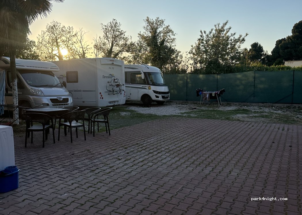 This camping parking area is very good. It is only 10 meters away from the sea. It is a quiet place with many bars and supermarkets nearby. The owners are very friendly. For 15 euros per night, they offer: Electricity WiFi Washing machine Security at night Coffee in the morning I love this place.