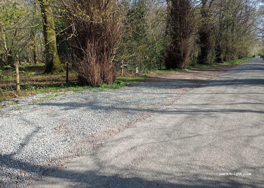 Gravel layby on a country road. No signs prohibiting overnight stay or parking. Looks fairly level. We came across this on a walk so did not stay here.