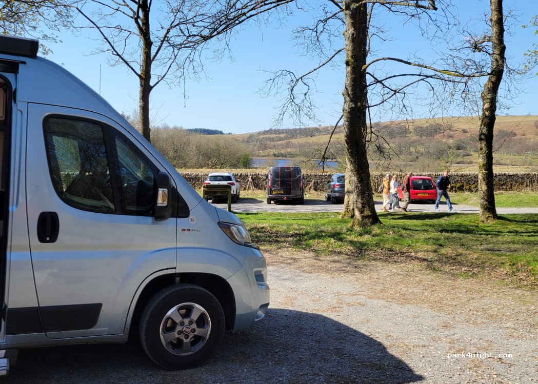 Parkplatz am Stocks Reservoir. Einfacher Zugang im Gisburn Forest. Idealer Parkplatz für Spaziergänge, Radtouren und eine Tasse Tee tagsüber.