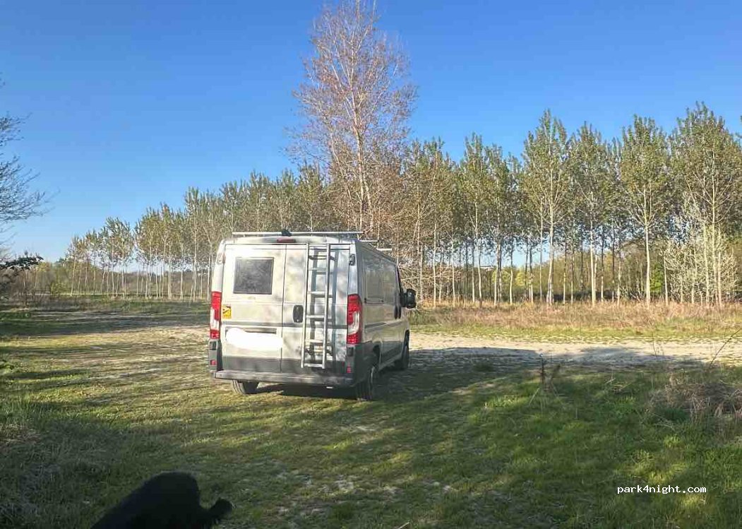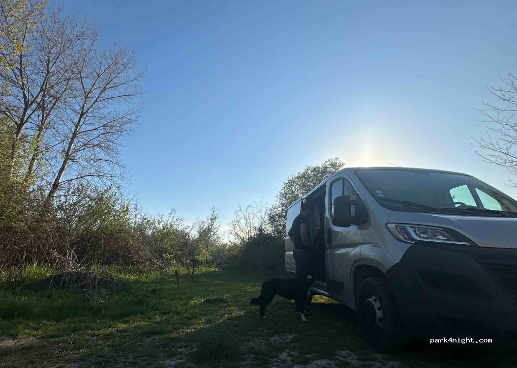Very quiet, calm and pleasant little spot on the riverbank. Access path a little complicated (especially in rainy weather, to be avoided), but doable with our Jumper if you go slowly. Maybe a few mosquitoes in the summer but for our visit in April it was perfect. Beautiful sunset and sunrise, very clear. We spent only one night there but will not hesitate to come back if we pass through the area.