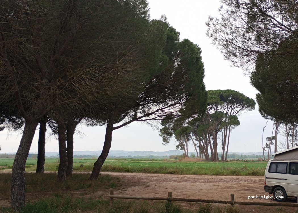 Plusieurs parkings sous les pins, plats et au calme absolu. Idéal pour la visite de Saragosse. Possibilité de ballades VTT autour et de découverte à pied des anciens bras de l'Ebre.