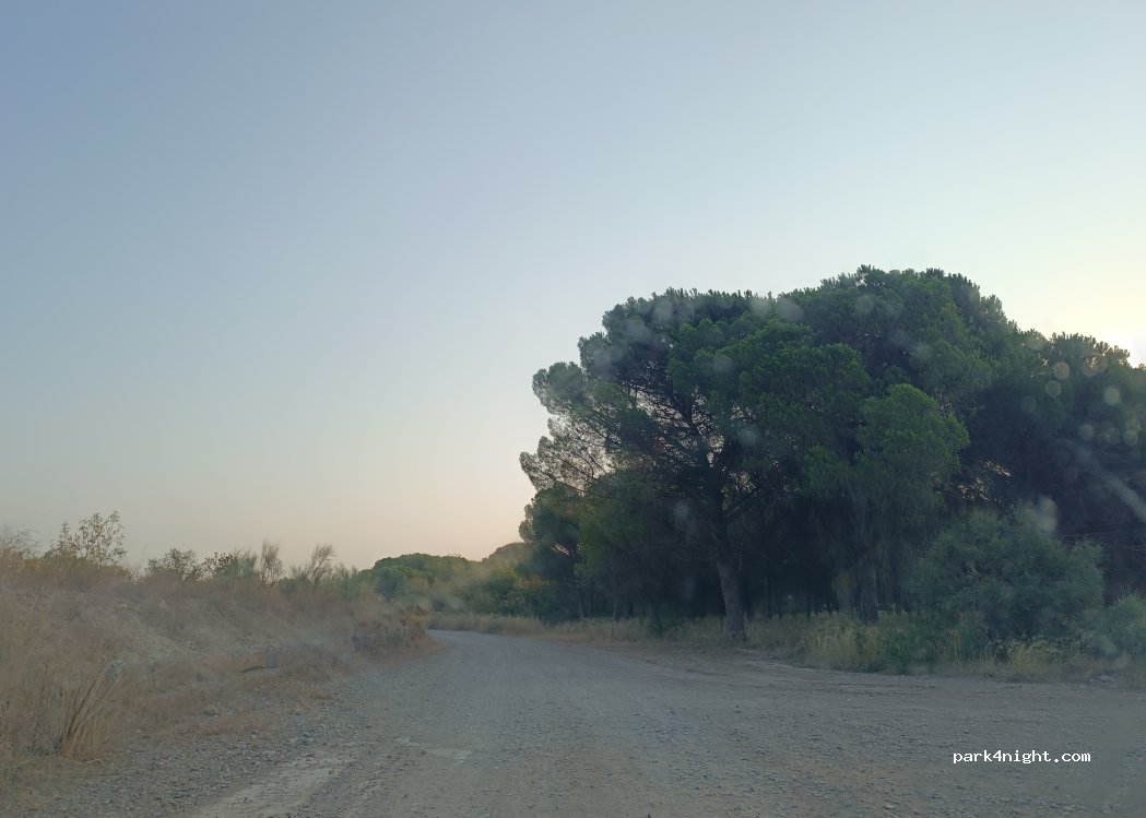 Several parking lots under the pine trees, flat and peaceful. Ideal for visiting Zaragoza. Mountain biking is possible in the surrounding area and exploring the ancient branches of the Ebro River on foot.