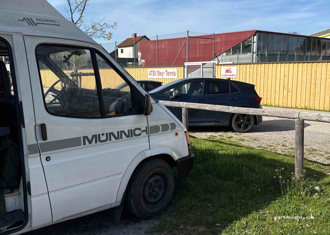 Belle place de parking pour une nuit, pas de panneaux d'interdiction. Skate park et terrain de tennis juste à côté, mais pas dérangeant. Vous pouvez explorer la ville directement à partir d'ici.