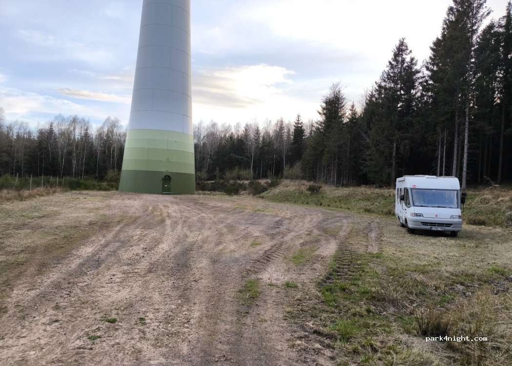 Au pied d'une éolienne terrains assez plat. calme éloigné de la route. l'éolienne ne gêne pas. on ne l'entend quasi pas. 5 a 7 emplacement facilement grand gabarit.