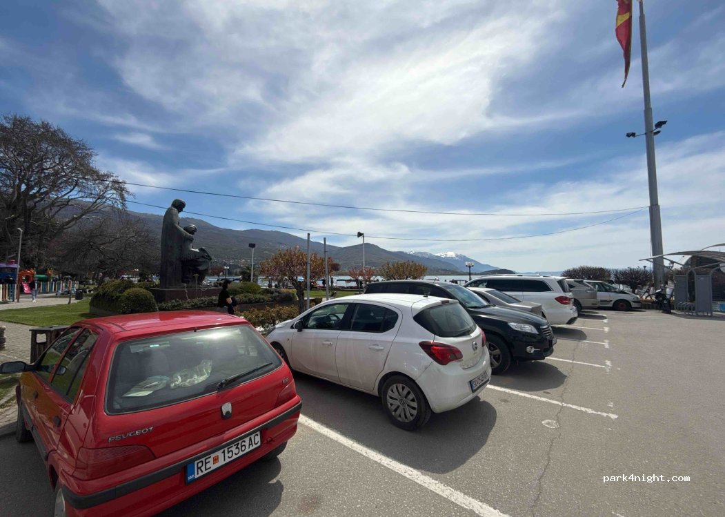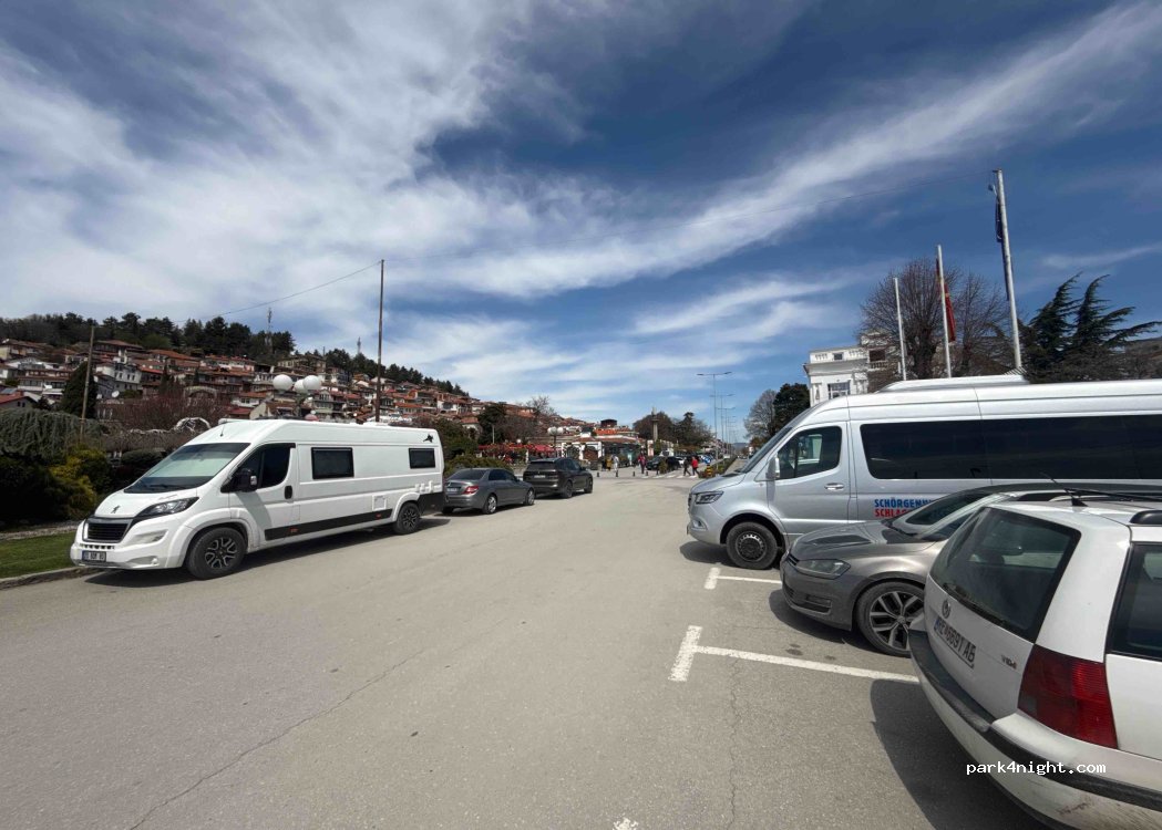 Good parking lot for access to Ohrid town. Paid but very cheap - I think around 30 DEN an hour. Fits all sizes of vans