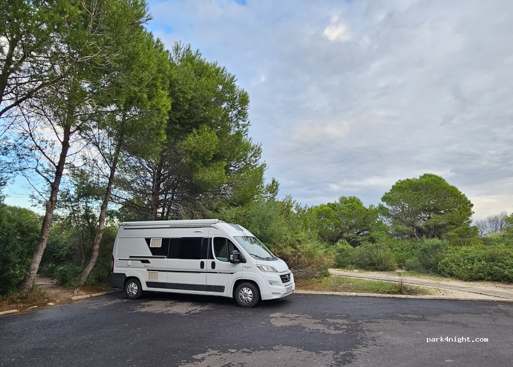 The problem here is that Spain has banned all wild-camping so it’s safer to park here if you have a smaller van/transporter so neighbours don’t start complaining or calling the police as this is parking for people who live i the buildings there. Generally no problem