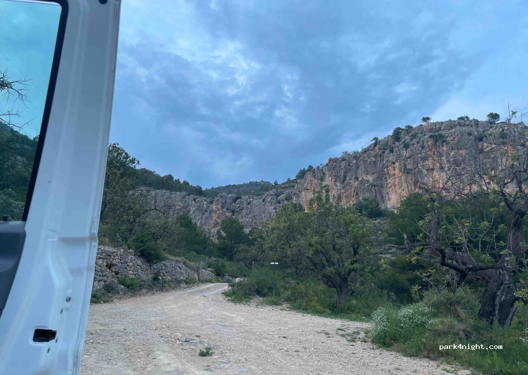 Perfect spot for climbers who want to sleep in front of the beautiful wall in Cucala. Easy to reach from Borriol. The wall is only a 10-minute walk away. Completely deserted, except for a few cool locals on weekends. At night, you're alone, quiet, safe, and beautiful! We highly recommend it to all climbers here :-))