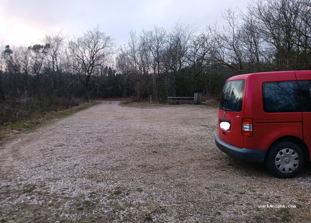 Naturschutzgebiet. Tages Parkplatz. ÜBERNACHTEN VERBOTEN. Kleiner Wanderparkplatz im Wald.