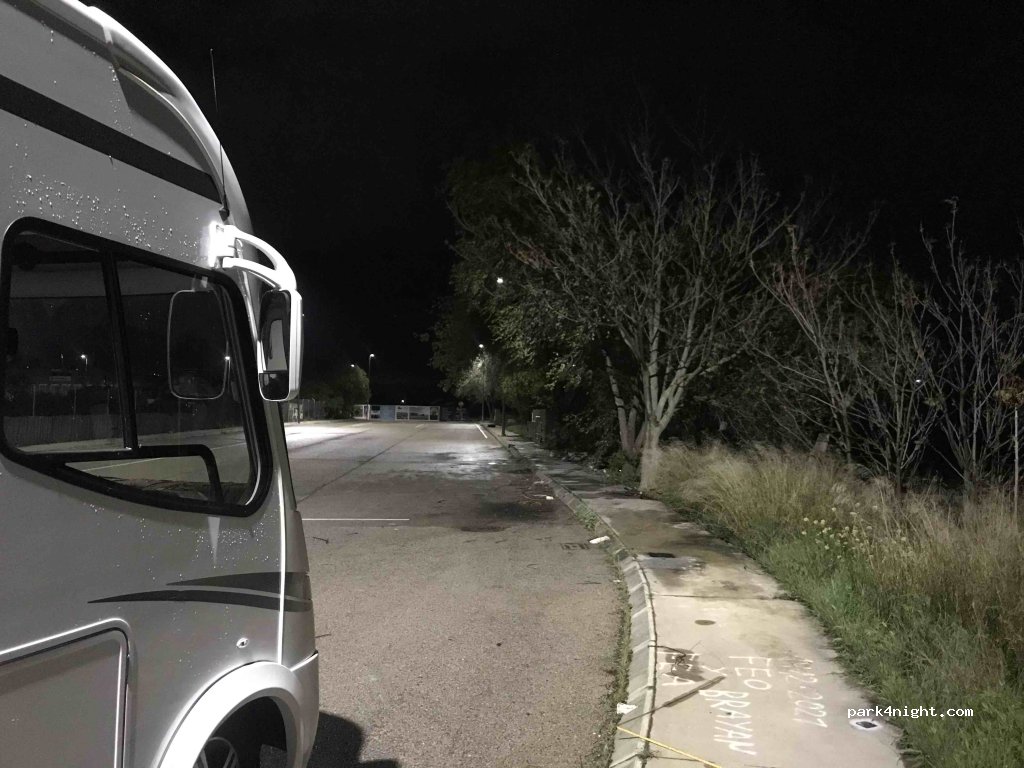 Calle asfaltada y sin salida, con un olivar a uno de los lados. Sin servicios. Ligeramente inclinado. Lugar tranquilo, iluminado por la noche y seguro, para pasar la noche en tránsito. Taller de autocaravanas a 2 minutos o 1,3 Km por si surge cualquier avería.