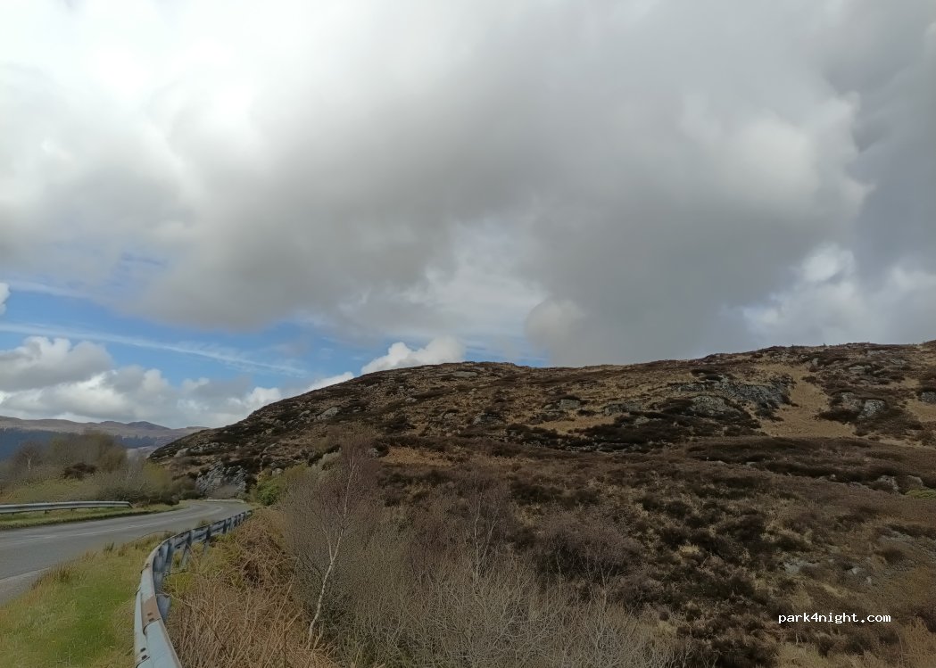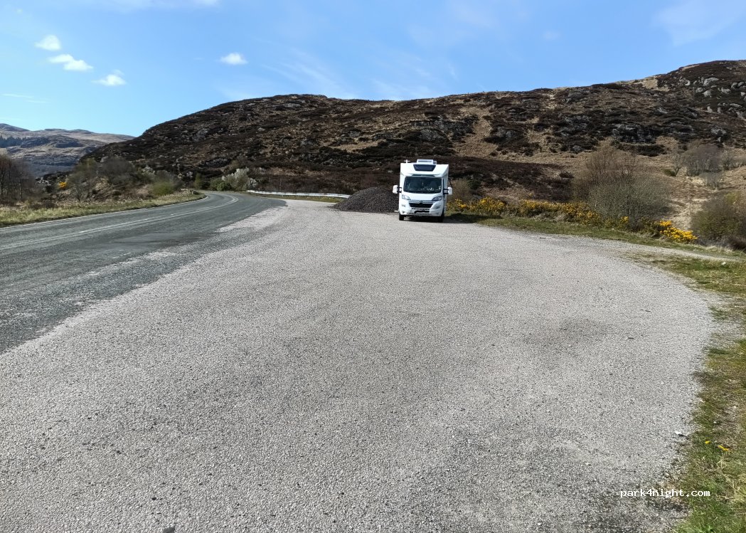 Large, deep lay-by, with excellent views across the hills.