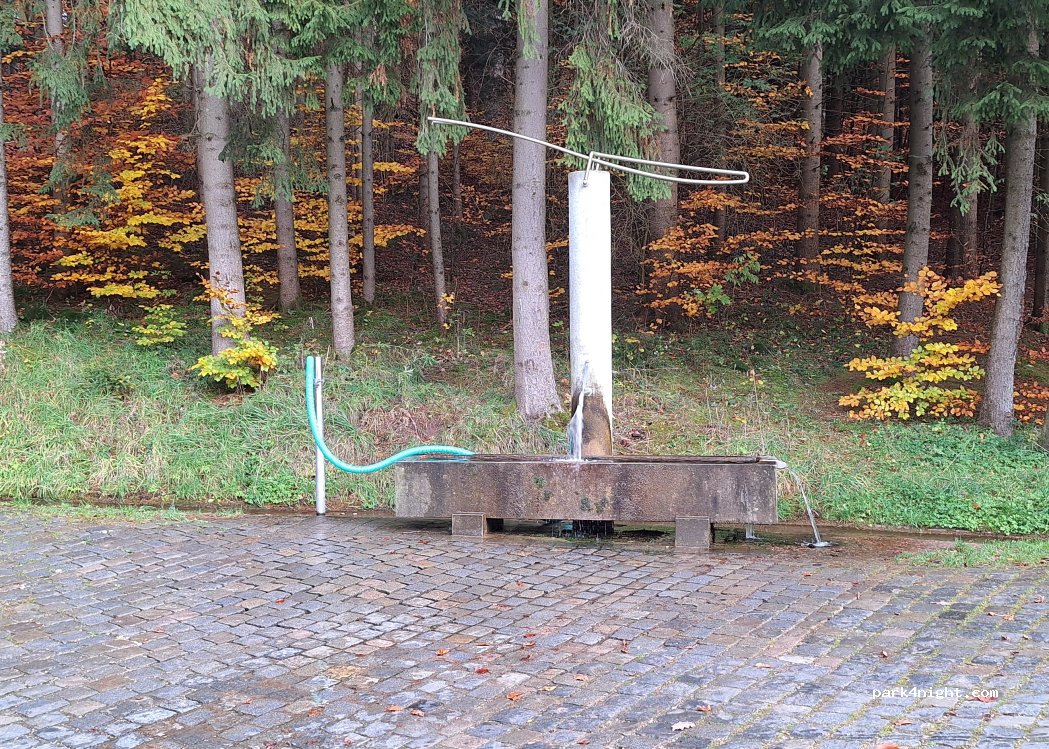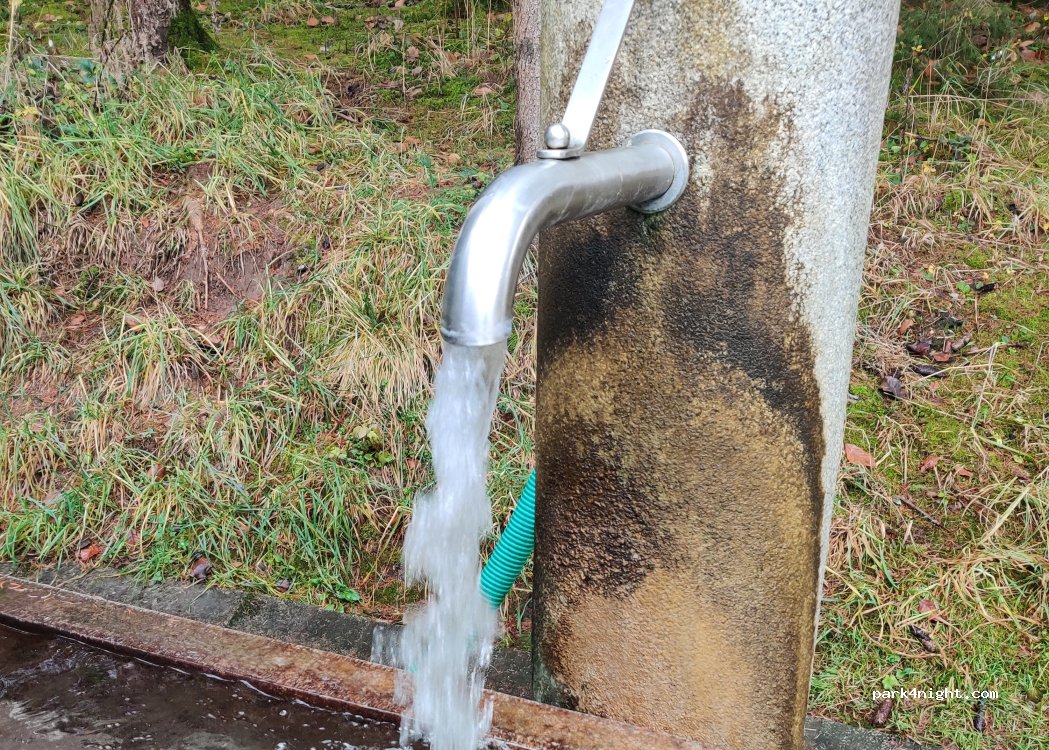 Belle source d'eau pour le remplissage. Peut-être que vous pourrez même y passer la nuit. Des tables et des bancs sont à disposition.