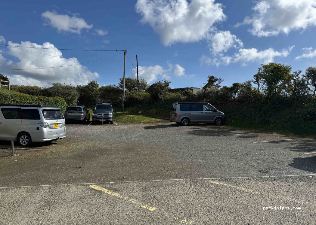Small parking lot just before Polruan. No overnight parking restrictions.