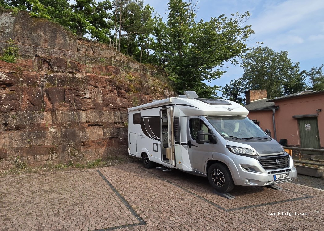 Parkplatz direkt unterhalb der Wartburg, Tag und Nacht nutzbar für PKW, Wohnmobile und auch Wohnwagen, Motorräder. Einfahrt, Ausfahrt - Kontrolle durch Kennzeichenerfassung, Bezahlung am Automaten (stundenweise oder Tagesticket) oder via QR-Code. öffentliche Toilette etwa 150 m weiter (24h offen) und über Tag direkt am Parkplatz. Toller Ausgangspunkt für Wartburgbesuch und Wanderungen rund um die Wartburg