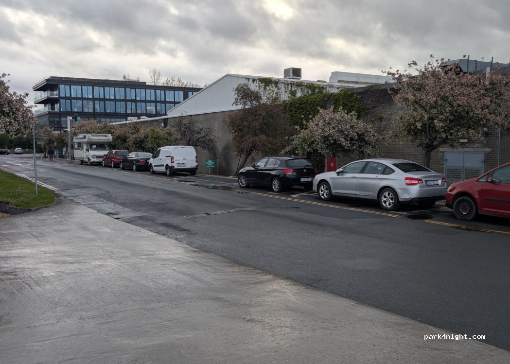 8 public free parking spaces in front of a Lidl Supermarket. No restrictions to overnight or height.