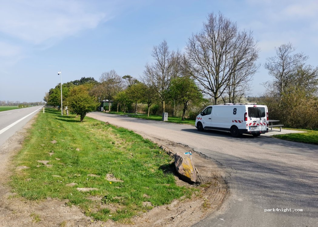 Schöner Rastplatz mit Tischen, Bänken, Mülleimern und Toilette (behindertengerecht).
