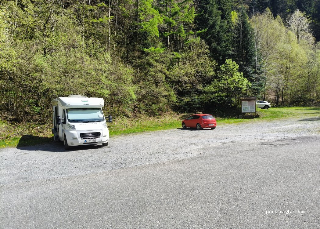 Roadside parking. This is the highest you can go with your motorhome. From here, the height limit is 2 m and the length limit is 6 m.