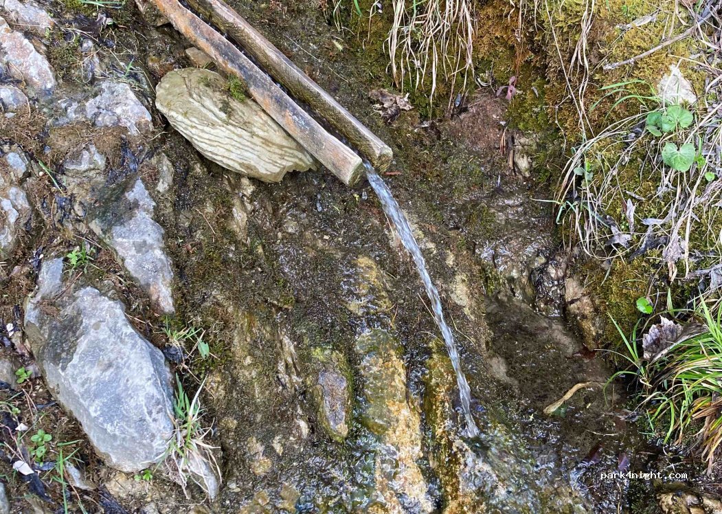 Trinkwasser. Parkmöglichkeit vorn, auch für ein großes Wohnmobil. Man muss es mit einer Dose füllen