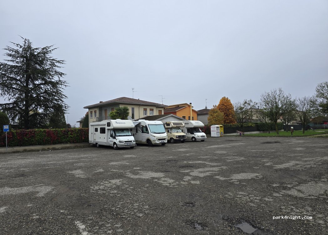 Parcheggio gratuito, con servizi carico/scarico ..in comune con macchine, parco giochi ,molto bello, adiacente. Grossa azienda nelle vicinanze.in zona residenziale e tranquilla a 5 minuti dal centro a piedi.