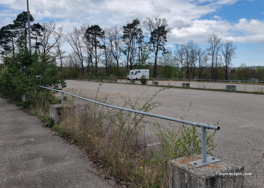 Aparcamiento en pistas de tenis y campo de tiro. Muy cerca de la autopista y por ello ruidoso. No muy visitado