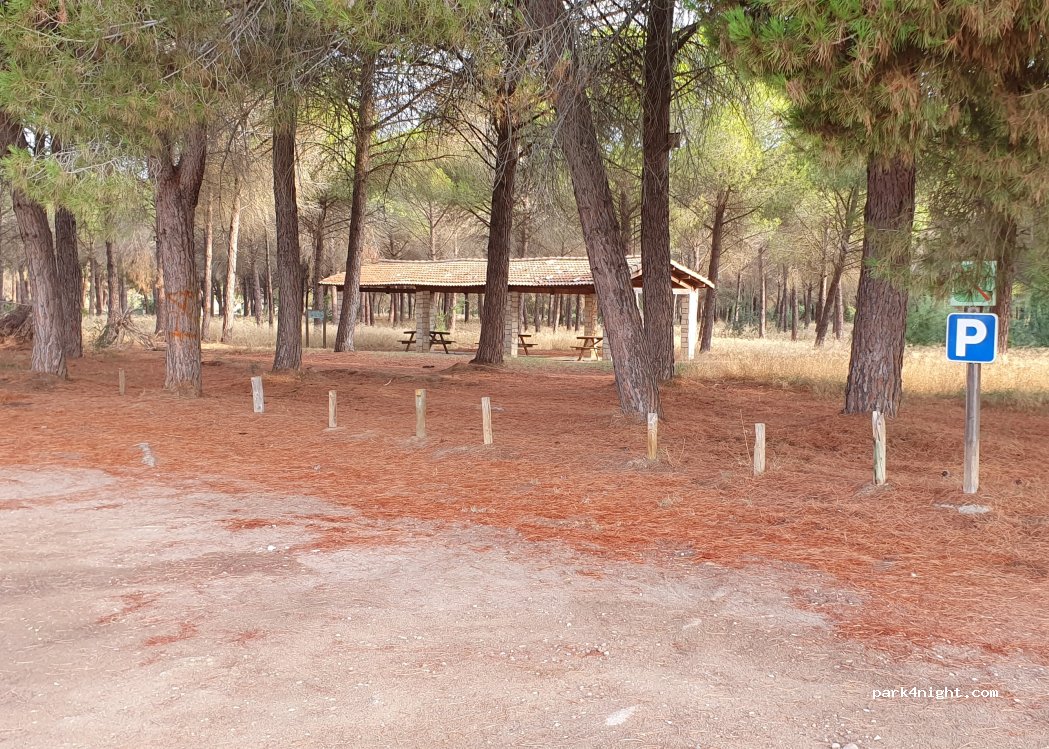 Aparcamiento en un pinar. Zona de picnic protegida. Lugar muy tranquilo.