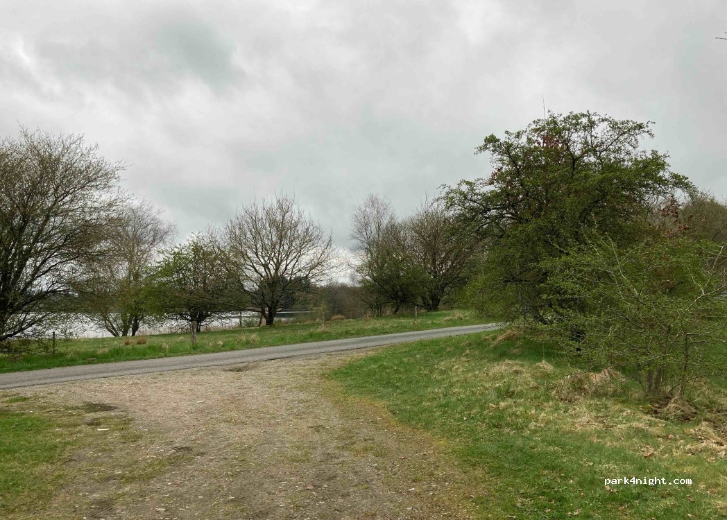 Petit parking pour 1 ou 2 vans maximum. Proche d’une petite route qui longe le lac, peu passante. Spot de l’autre cote de la route, au bord d’une petite prairie arborée.