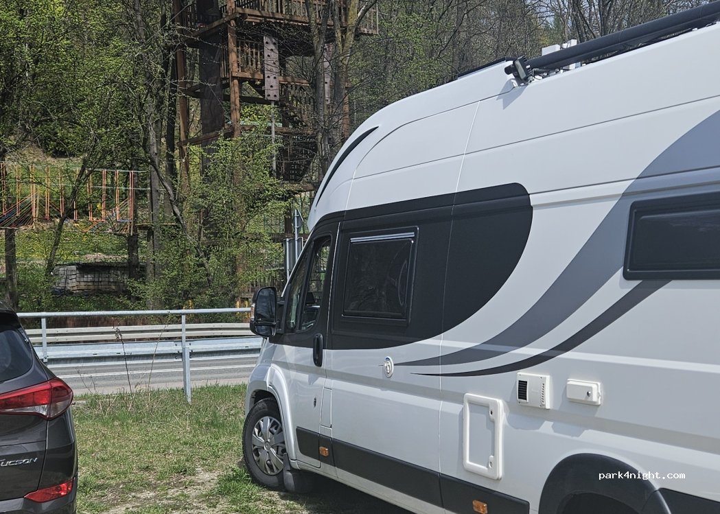Free place near the playgound (rope park). A little noisy because of the Street.