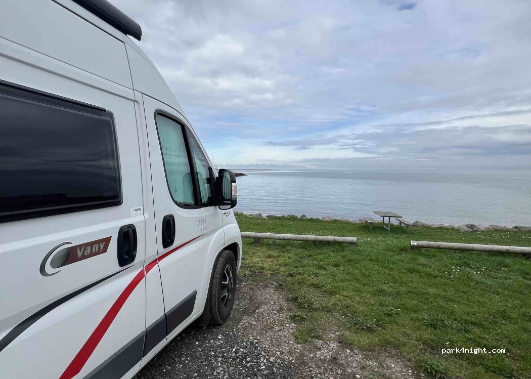 schone plaats met zicht aan zee, ideaal voor het te nemen van ⛴️ ; maar ook grootste minpunt: het is constant een komen en gaan van campers van en naar ferryhaven! Betaalhuisje s'nachts vinden is ook beetje zoeken 160 DKK zonder electriciteit, met wifi